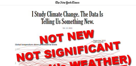 A guest opinion article in The New York Times by Zeke Hausfather, Ph.D, titled “I Study Climate Change. The Data Is Telling Us Something New,” suggests that a single record warm month of data is an indication of “evidence that global warming has accelerated.” The claim is false for four reasons; because a single month … Continue reading NYT Claims Record September Temperature Indicates Accelerated Climate Change- It Doesn’t