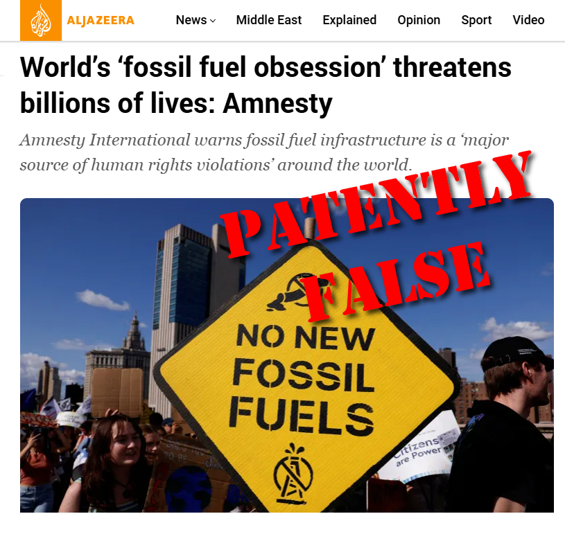 The irony is that Amnesty International’s own advocacy relies on fossil fuels. Every activist flown to the COP30 summit in Brazil, every smartphone used to record protests, every banner and microphone—all exist thanks to petroleum-based materials and energy. By parroting Amnesty’s talking points without skepticism, Al Jazeera trades journalism for advocacy. Contrary to the premise of Al Jazeera’s story, fossil fuels remain the foundation of modern civilization and will continue to be so until scalable, reliable, relatively inexpensive alternatives emerge.