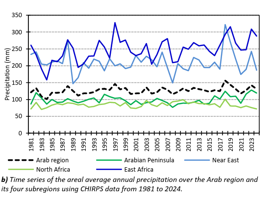 With regards to flooding and precipitation, the WMO identifies no trend in rainfall or flooding across the Arabian region. Breaking it down into sub-regions, East Africa has seen an increase in average annual precipitation, while North Africa began to see a decline since 2010.